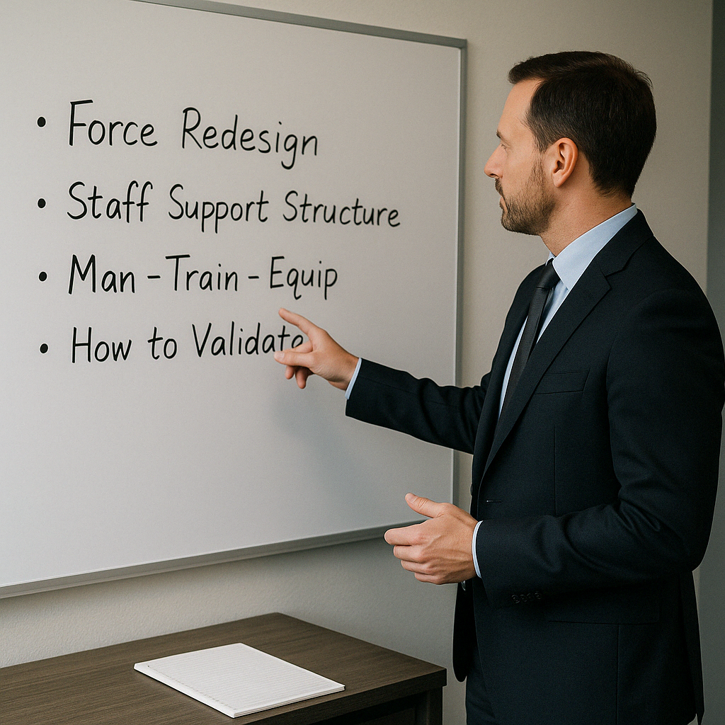 Our consulting services specialize in force redesign, training management, validation, and operational planning, all tailored to resistance and irregular warfare. We help organizations build adaptable and resilient forces that can operate effectively in complex and contested environments. Whether refining training programs, optimizing force structures, or developing strategic plans, our expertise ensures clients are prepared for the complexities of modern irregular conflict.